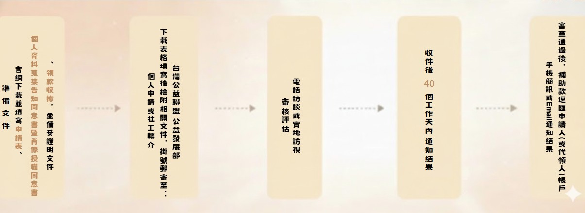 撥款:經核定通過後,補助款項將直接匯入您提供的金融帳戶。